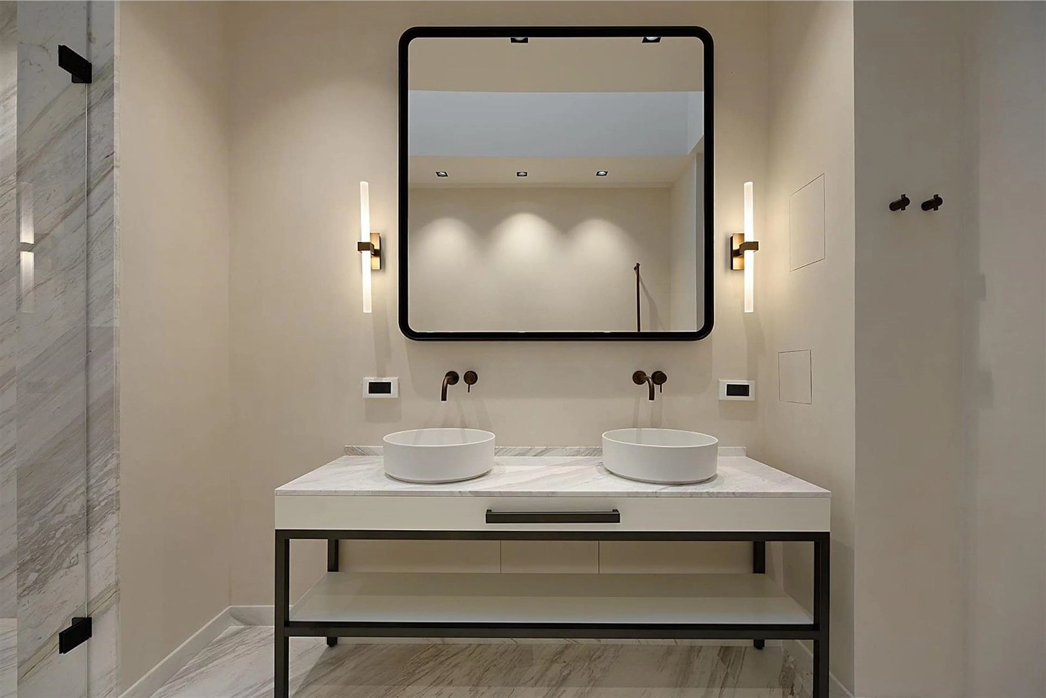 Стены ванной комнаты премиум-класса в ЖК «Тургенев» в Москве.