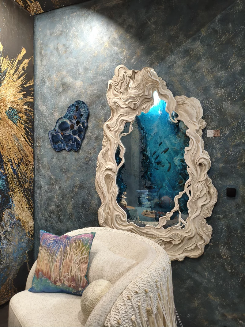 Особые слова благодарности команде филиала PRATTA Санкт-Петербург, которая представила работы мастера Анны Гребеневич (статус PRATTAMASTER). Для стенда №34 Анна создала несколько панелей размером 3,5 × 1,25 м в красной и синей (отдельно) мраморной стилистике, выполненных с использованием материала PRATTA ANTICO VENEZIANO.